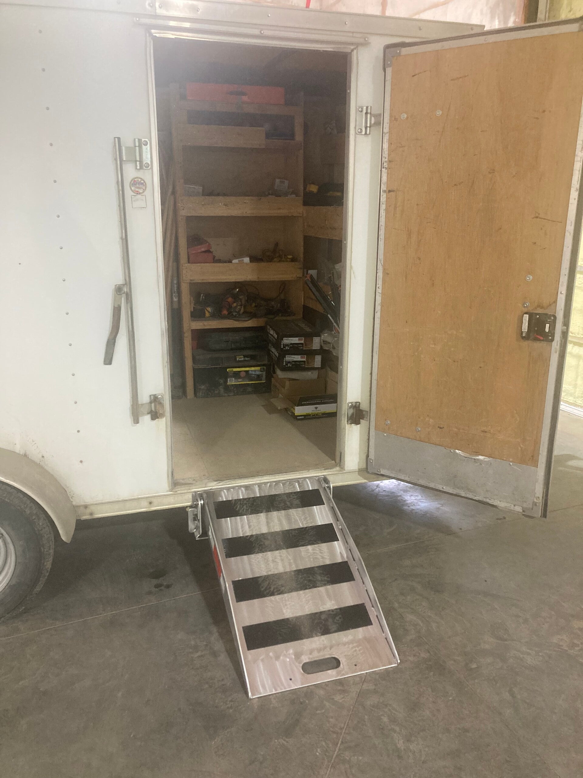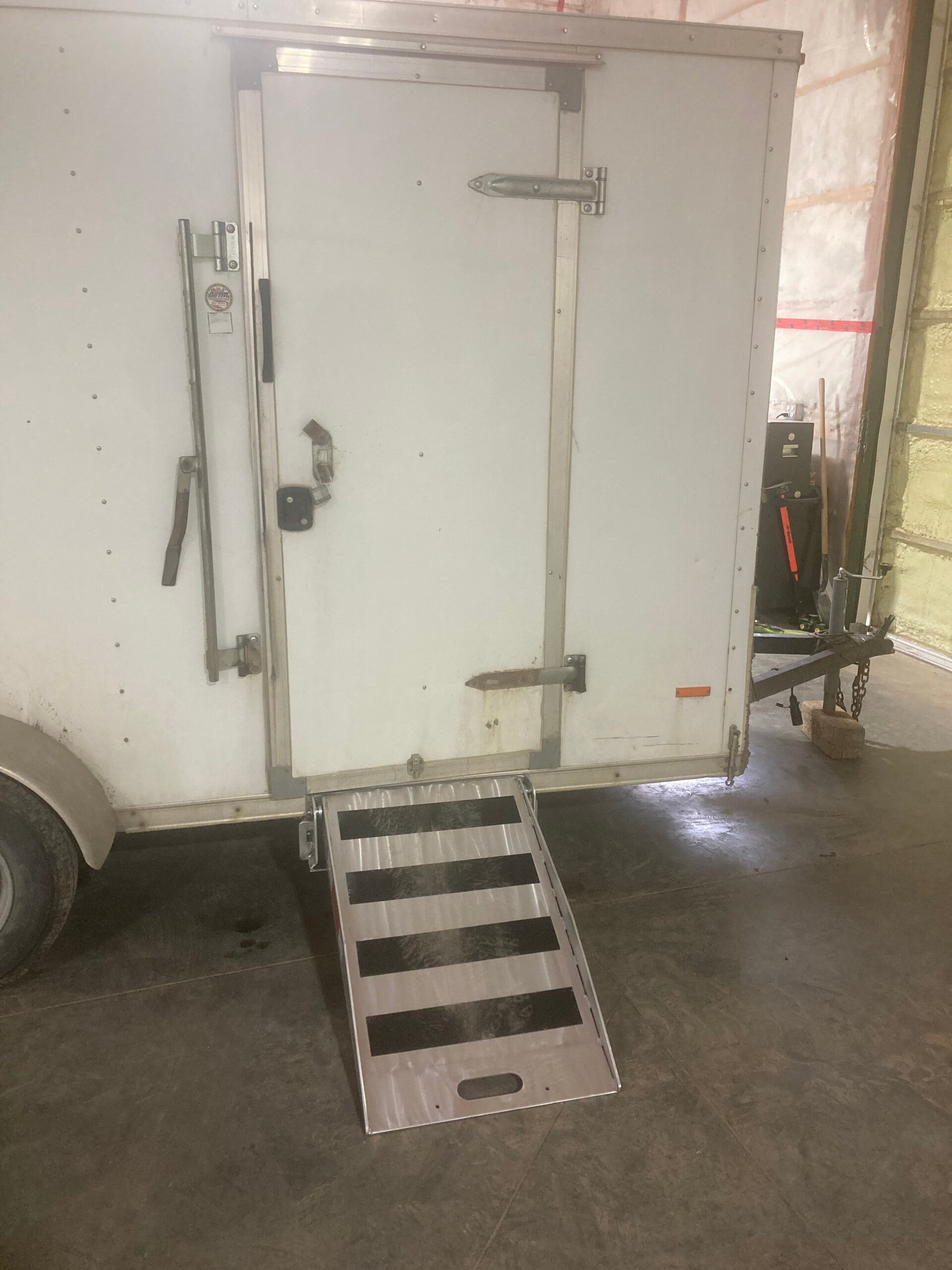 Here are some great aluminum drawer ramps you can install them in the rear of your trailer or side door light weigh and can hold up to 800 lbs check out the sticker for additional information .