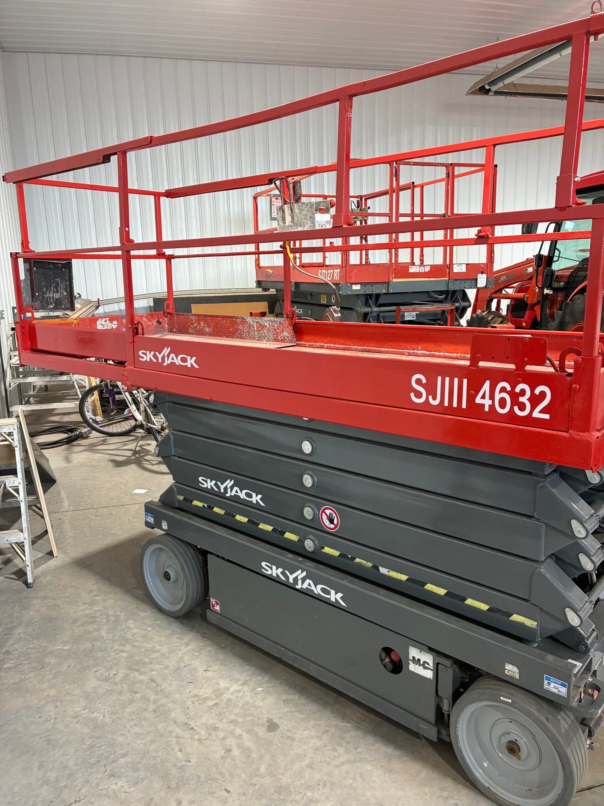 Here is a 2019 skyjack 4632 electric scissor lift has 424 hours everything works as it should. Contact for more info.